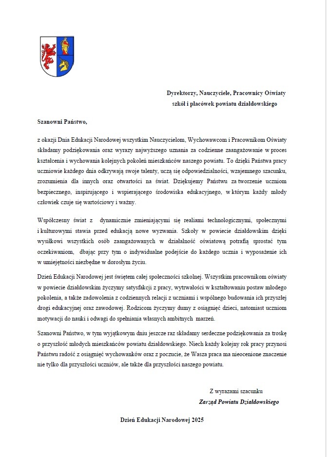 Najserdeczniejsze życzenia z okazji Dnia Edukacji Narodowej!