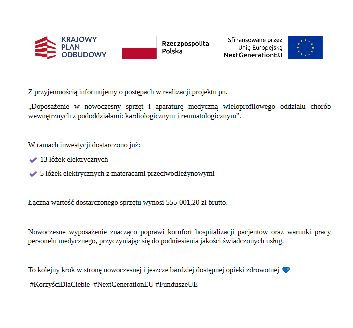 Nowoczesny sprzęt dla oddziału chorób wewnętrznych SPZOZ w Działdowie