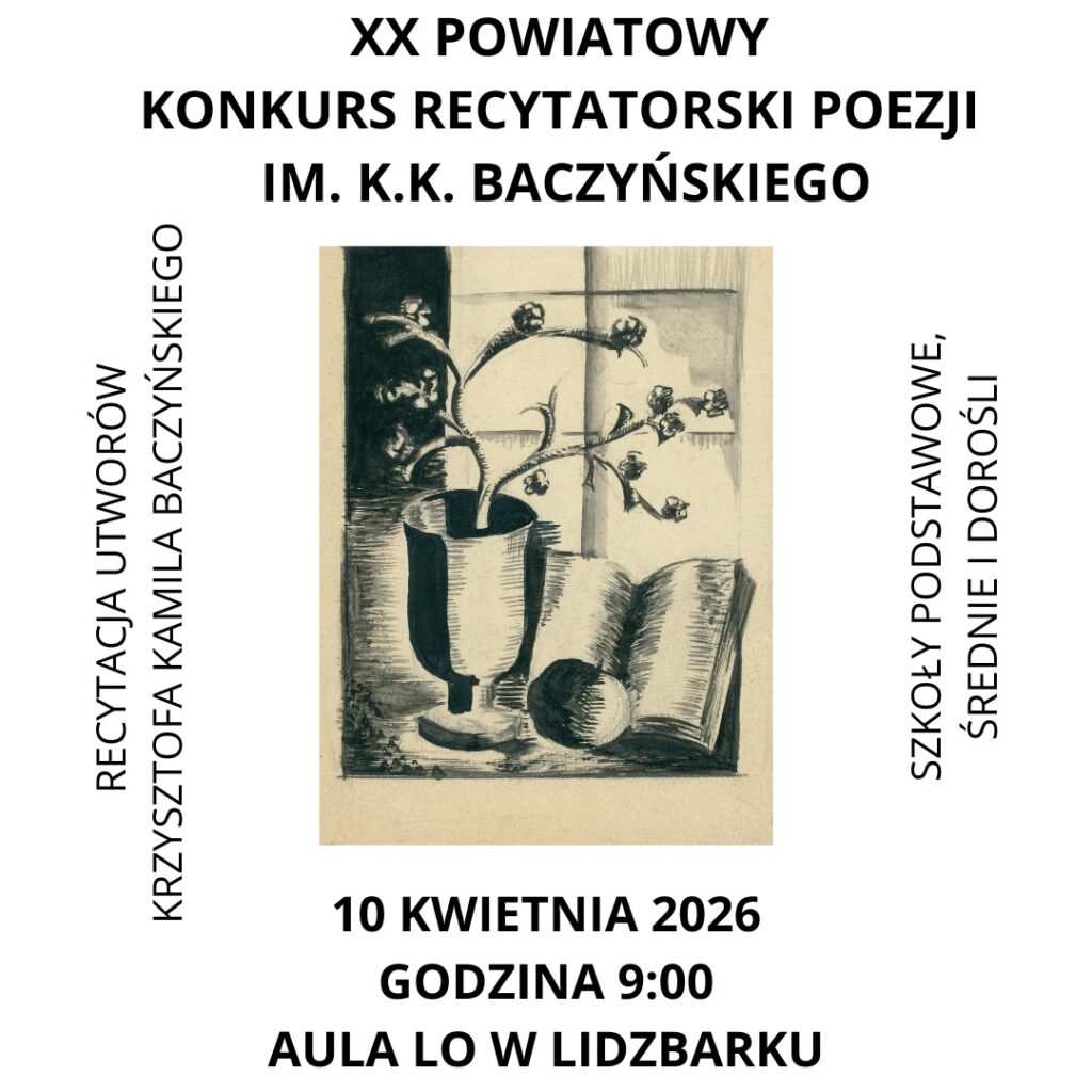 Zaproszenie do udziału w XX Powiatowym Konkursie Recytatorskim Poezji im. K.K. Baczyńskiego
